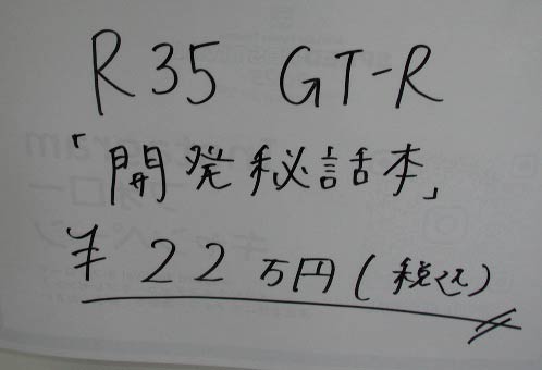 スピードフェスティバルのグッズではないのだが、とんでもない値段をする物が売られていた。「R35 GT-R開発秘話本」、価格はなんと22万円。