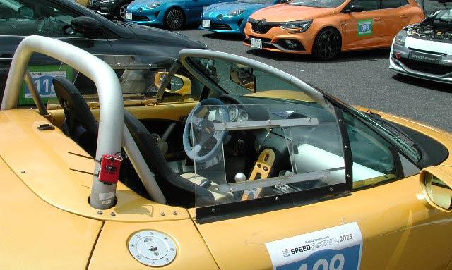 こちらはルノーのスピダー。参加する年はなぜか土砂降りに遭う車。が、今年は雨には遭わなかった。それにしても、一緒にやってくる台数が減ったなあ。
