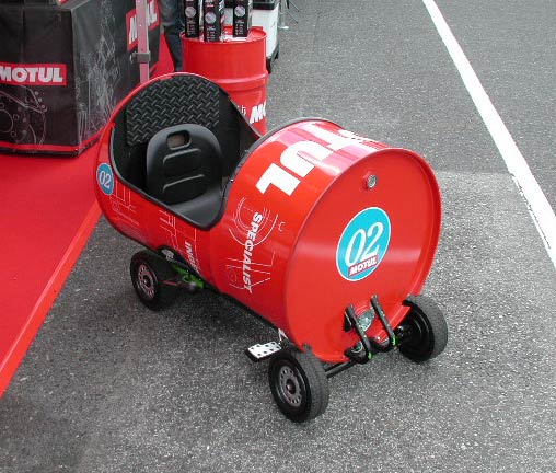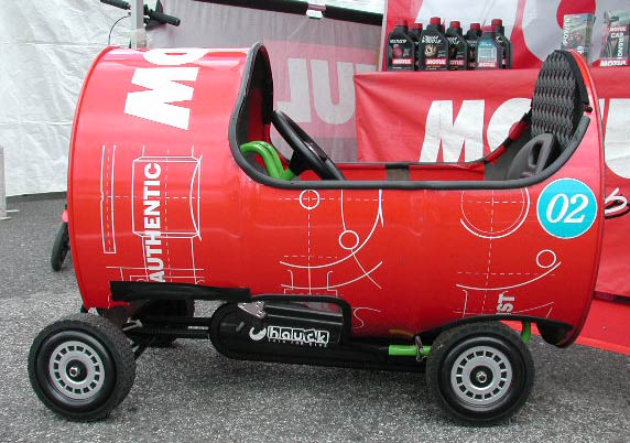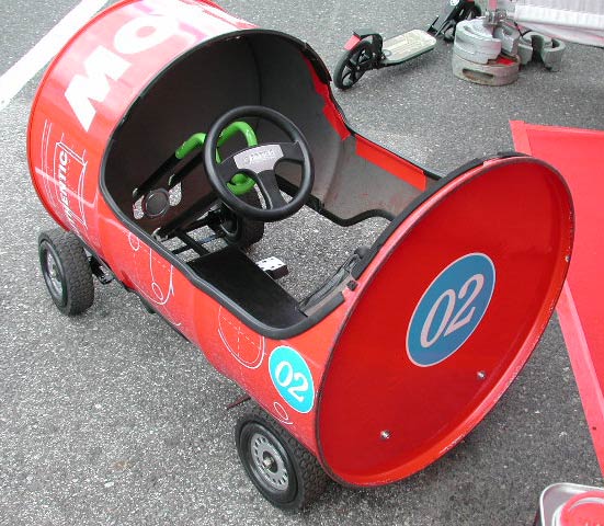 ドラム缶で作られたペダルカーがあった。