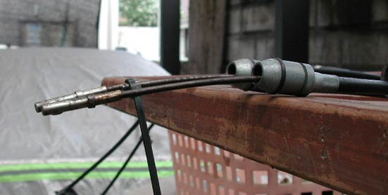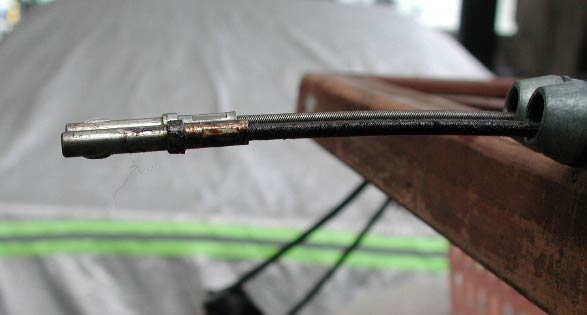 次に、切れたケーブルと切れていないもので比較した。切れたケーブルだが、先端部をタイラップでくくりつけた。