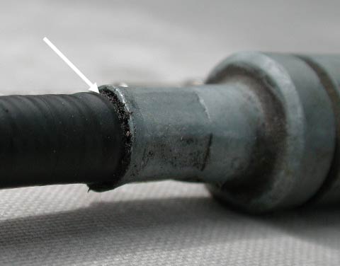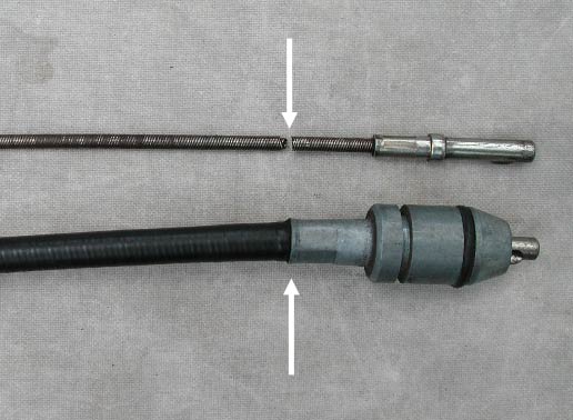 改めて双方のケーブルを比較する。すると、切れた箇所はミッション側にある「差し込み口の付け根」にほぼ相当していることがわかる。