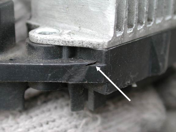 矢印部分にクラックが入ってはいるが、原因になり得るのか??