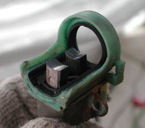 蓋をとってブラシを見る。錆が発生しているが、ブラシの極端な摩耗はない。