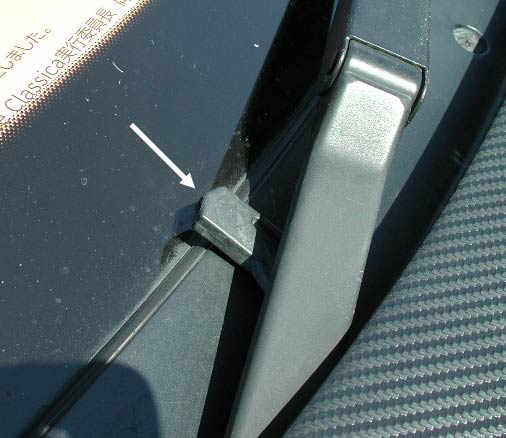 ボンネットにカーボン柄のカッティングシートが貼られたことを期に、ウォッシャーノズルの位置がボンネットからアッパーカウルへと変更された。