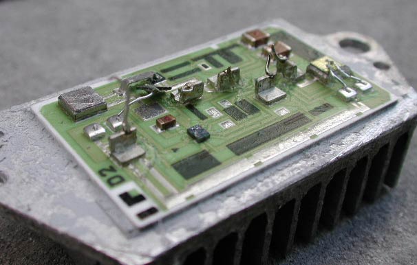 基板はヒートシンク上に直づけされていた。基板のみを取り外そうとしたのだが、セラミック基板のため割れてしまった。