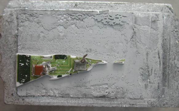 ひょっとすると、ヒートシンクの中に何ら発熱しやすい素子が組み込まれているのではないかと思い基板を割っていったのだが、そのようなものは存在しなかった。