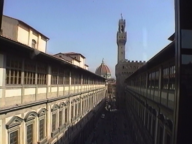 「ウフィツィ」とはイタリア語で「事務局」を意味する。行政事務局を一つにまとめるために、ヴェッキオ宮殿の隣に、コの字型に建てられ建物の最上階の回廊を、ギャラリーとしたのがウフィツィ美術館の母体であると聞く。