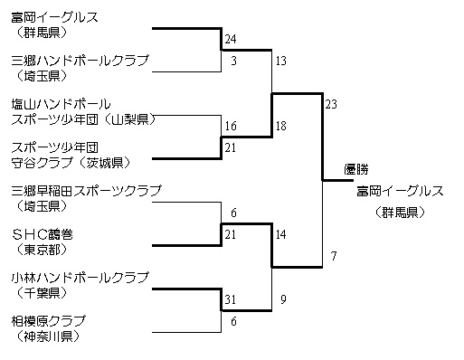 富岡イーグルス 24 (11- 2, 13- 1) 3 三郷ハンドボールクラブ