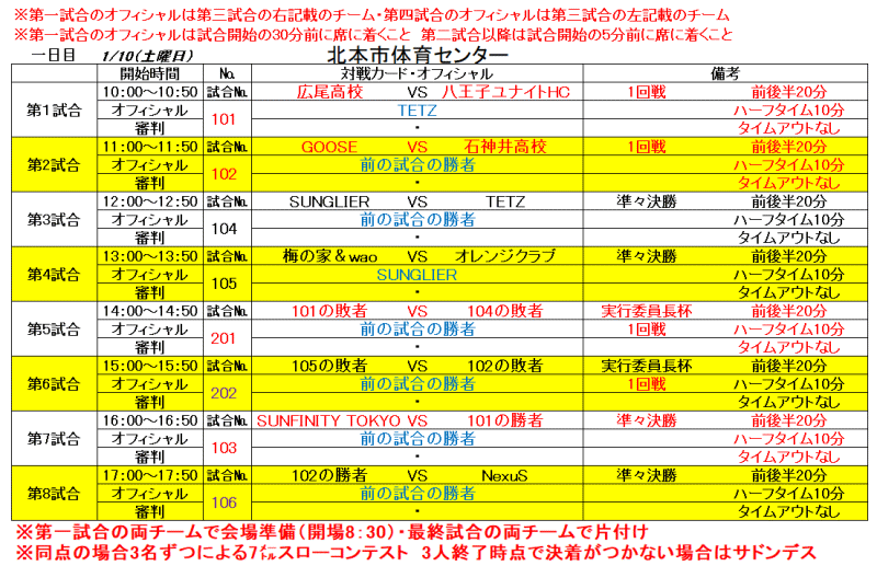 結果: 東京女子オープン杯 優勝:オレンジクラブ 準優勝:SANGLIER 3位:SUNFINTY TOKYO 実行委員長杯 優勝:梅の家&wao 準優勝:GOOSE