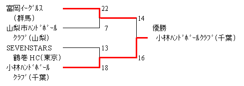 筑波学園ハンドボールクラブ 20 (10- 6, 10- 9) 15 小林ハンドボールクラブ