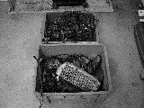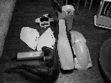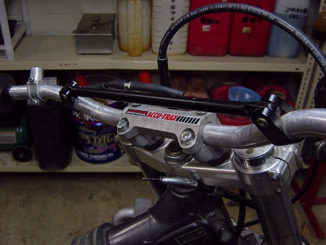 | とりあえずハンドルを付けないことには動かすこともままなりません。 以前使っていたレンサルのハンドルがぶら下がっていますのでそれを止めるよう、ハンドルクランプを探しますが純正部品は見あたりませんでした。 しかし「アンサー」の左右連結タイプクランプが代わりに出てきましたのでそれを装着することにします。どの程度効果があるか今から楽しみです。 |