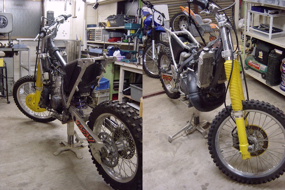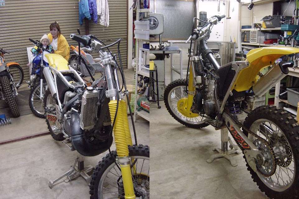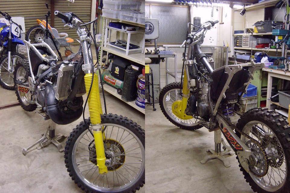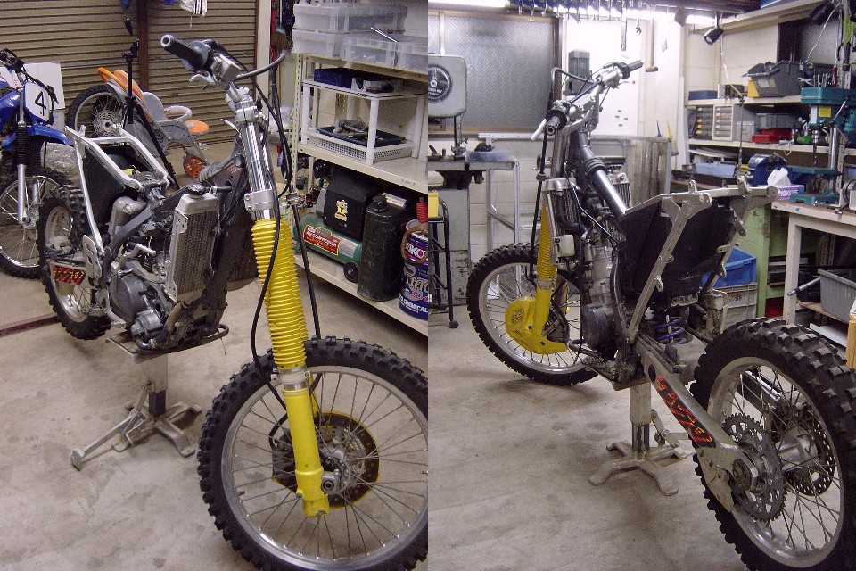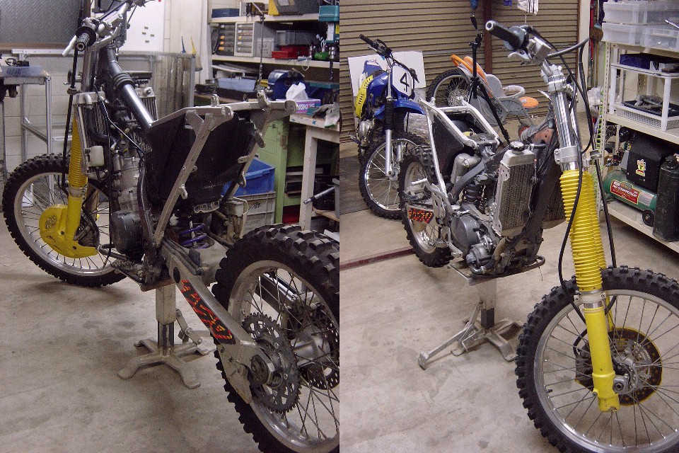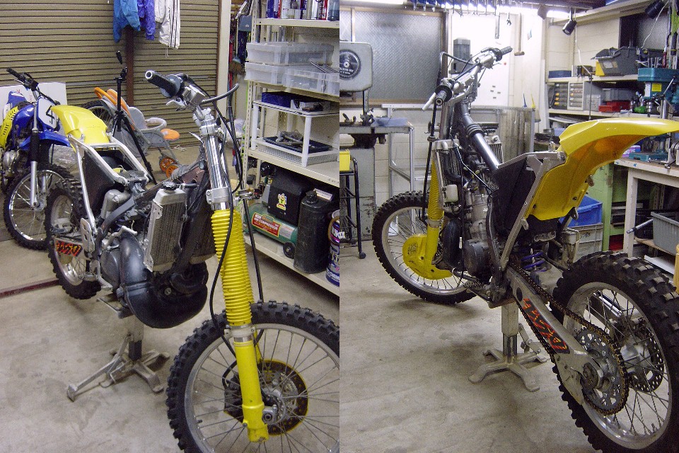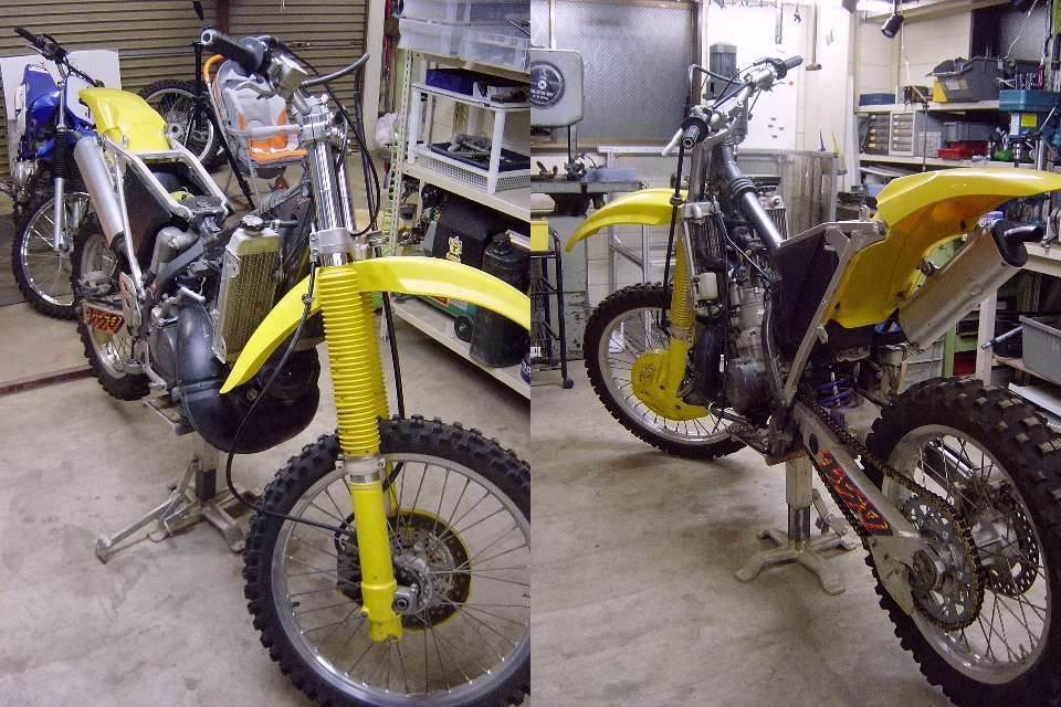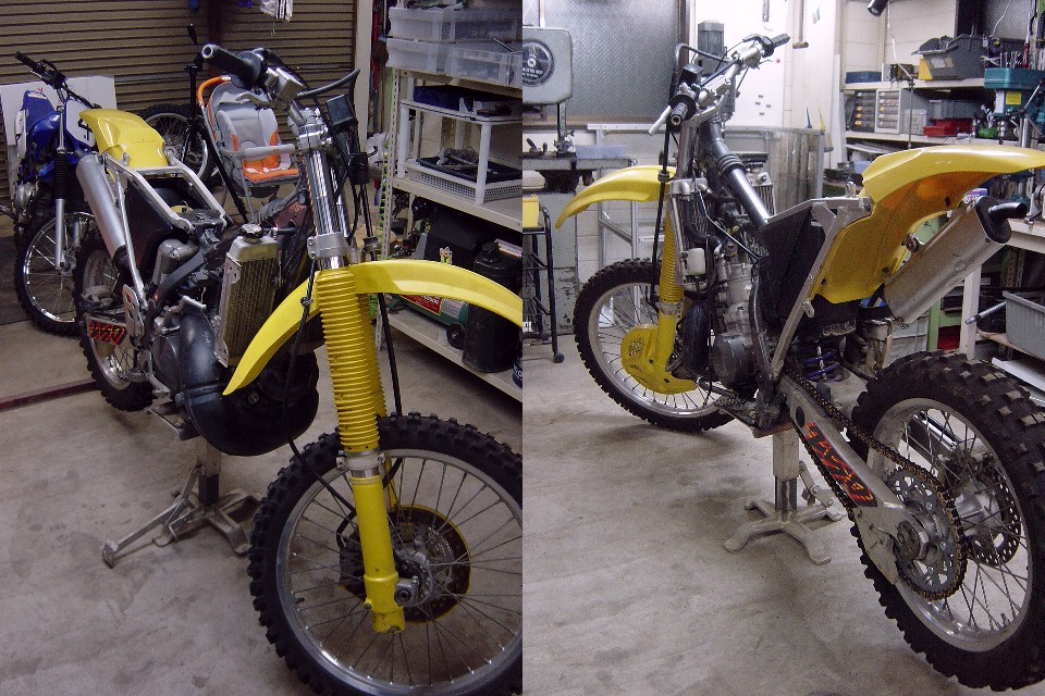 | お正月休みにHP-RMX事務所を整理していたところ、部品取り用の'96RMX250Sが出てきました。 と言うよりは、今まであまりの汚さ(事務所の)に見て見ぬ振りをしていた訳ですが、整理のついでに色々と使えそうな部品も発掘されましたので、このRMXをエンデューロレーサーに仕上げてレースに出てみようかということになりました。 あくまでもレースには「参加することに○○がある。」ということで結果を期待されては困るのですが・・・。 |
