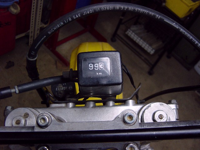 R用のスピードメーターを取り付けます。Sのトップブリッジに難なく付きます。 |
