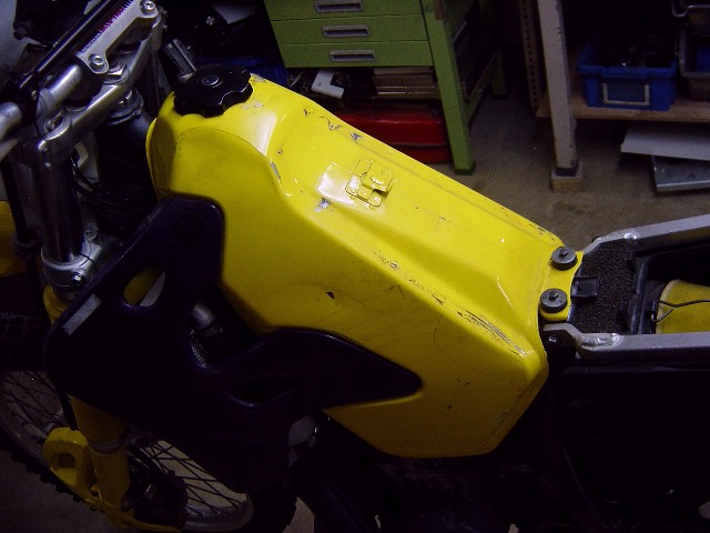 | シートを装着します。Sのものです。 これで一通り形ができあがりました。後は試走しながらセッティングを煮詰めていく予定です。 |