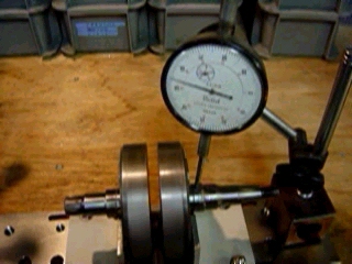 クランクバランス取りの画像です。3/100mm程度の振れが1/100mm以内に入ります。【’03