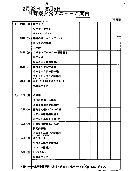 食堂の写真撮影を忘れていました。その代わりに寮の夕食メニューを掲載します。