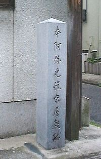 - この地は足利時代初期より刀剣の砥、拭い、目利きのいわゆる三事を以て世に重きをなした本阿弥家代々の屋敷跡として「本阿弥辻子」の名を今に残している。
