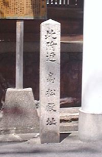 その後、平治の乱(1159)に御所は焼失するが、邸内にまつられていた鎮守社高松明神は、