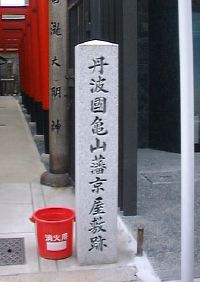 江戸前期に当地は、間口11間、奥行30間の芸州広島藩42万石、浅野氏松平安芸守の京屋敷で、その後1730年頃、丹羽篠山藩5万石、形原松平紀伊守信岑(のぶみね)の京屋敷となる。 信岑は寛延元年(1748)丹波亀山藩5万石に転封になる。以降歴代亀山藩主は幕府の要職に就き、京都火消役にもなり譜代大名として京都監視の重責を果たした。
