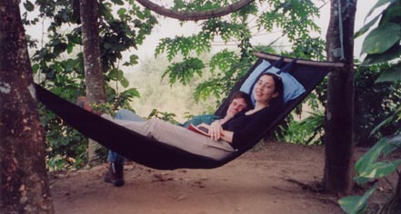 ジャングルとの境界の辺りでハンモックで休憩したときの写真だそうです。この辺はトラも出没することがあるそうですから、けっこう危ないのかもしれません。