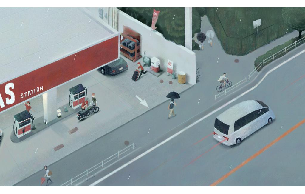 トヨタ自動車が全国のディーラー、顧客向けに配布するオリジナル年間ダイアリー。その冊子内に歴代トヨタ車の中から選ばれた5車種を、当時の時代背景を交えて描きました。これら5点のイラストレーションが2015年度版ダイアリーに挿入されています。