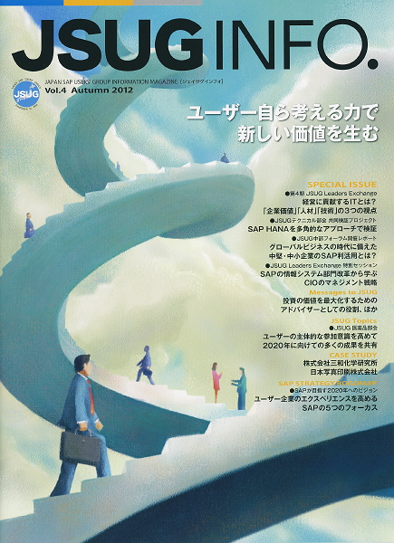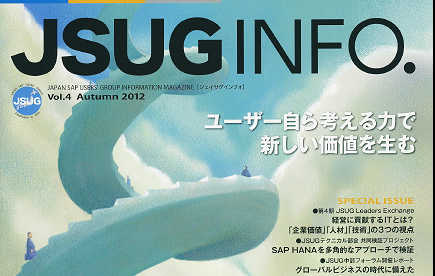 SAPユーザー企業グループJSUGの会報誌。「SAP INFO」の後を引き継いだ形で発行されたのが、この「JSUG INFO」です。クライアント様からの「イメージを継続したい」というご要望を頂き、引き続き表紙を担当しています。