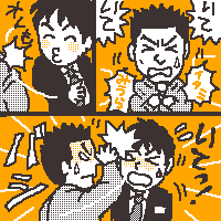 高橋克実さん、裏番組の「トリビアの泉」が終了して、念願のゲスト出演。 (寺脇さんとはプライベートでも仲良し♪) 演じたマーロウ矢木さんの扮装も うさんくさかったけど、 彼に暴行したこの二人組… 今時黒ずくめのサングラス! うさん臭さプンップン! 探偵ものパロディみたいでした。 |