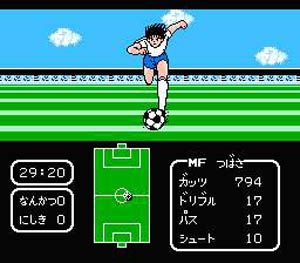 | 解説 | 選手の移動は十字キーで行い、パスやシュート等はコマンド選択で行うと言うシミュレーション要素をもつ珍しいサッカーゲーム。 アクション性が少ないシステムにより誰でも、少しプレイすれば白熱した試合を行うことが出来た。 ストーリーは原作を使用し、その完成度は高さから、以後SFCまで正シリーズで5作続いた。 |