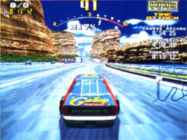 タイトルからもわかるように、アメリカで開催されているデイトナ500レースをモチーフにしており、ローリングスタート等のそれまでのレースゲームとは一線を画すゲーム内容となっている。 このゲームでのうりとなっているのが時速300Kmオーバーでのドリフト走行である。 他のゲームがグリップ走行を重視しなければならないのに対し、このゲームでは、まずドリフトを理解しないと初級でさえ1位でゴールすることが難しかった。 しかし、一度ドリフト走行というものを味わうとその爽快感が倍増し、このゲーム以降、ドリフトというものがレーシングゲームの大きな要素に育った。 |