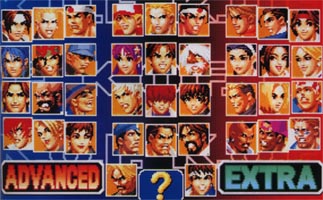 シリーズ5作目に当たる今作では’95〜’97でテーマとなっていたオロチが一段落して’94当初のテーマであるSNKキャラ総出演のお祭りゲーム色が色濃くなっている。 その為出演キャラクターも歴代キャラが顔を並べており総勢38キャラと、キャラクターの多さで挌闘ゲーム界でも群を抜いているKOFシリーズでも最高となっている。 また、システム的にも今まで発展させてきたアドヴァンスド、エキストラの両モードに加え、アドヴァンテージシステム、ルーレットチームエディットシステム等のシステムを追加し長くプレイできるように配慮が為されている。 |