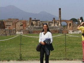 翌日は簡単なナポリ見物と国立考古学博物館の見学をし,ポンペイ観光の後ロ−マに向かった。 ランのように日本人でごったがえしていた),遺跡の見学をおよそ2時間くらいした。マリ−ナ門,フォロ,アポロ神殿,ジュピタ−神殿,スタビア浴場,ベッティの家,娼家,パン屋などお決まりのコ−スを廻った。浴場は男女に区別され脱衣場,冷水浴湯,温水浴湯があった。 |