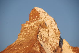 | 8月11日(火): 昨日の雨はすっかり晴れて、ホテル近くの駅からスネガ・エキプレスでスネガ展望台へ。ハイキングガイドの村上氏が待機。地下ケ−ブルを数分で、スネガ展望台2288mに。見望する山群についてガイドさんから説明を受ける。空をヘリコプタ−の音。モンブランへの荷物を運搬しているエア・ツェルマットのエリコプタ−で遊覧飛行もしていますと。 さあ、ハイキングの出発へ。まず展望台の下に見えるルイ湖に。ここで逆さマッタ−ホルンの写真を撮る。午前中が撮影に良いとのこと。ライ湖はモンタンベ−ル鉄道のリッフエル湖よりも風が少ないので、逆さの山影がすっきり撮影できるとのこと。マッタ−ホルン山頂から雲がパイプの煙のようになびいている(パイピング マッタ−ホルン)。ヨ−ロッパで一番高所にあると言われる?フィンデル村を通る下り坂のこのハイキングコ−スは、常にマッタ−ホルンを目の前に見ながらのコ−ス。村には眺望の良いレストラン。ネズミ返しの小屋。 この数年、両膝の慢性の痛みのある小生には、少しきつかったのか、最後には添乗員さんが横につき、両膝が笑い、がくがく。ヴィンケルマッテンから丁度来合わせた電気タクシ−に乗り、最終目的地のツェルマット駅へ。 昼食後、フリ−タイムとなり、駅前からゴルナ−グラ−ト鉄道(通常のパックツア−の定番)で約40分の所要でゴルナ−グラ−ト展望台3090mに。車窓の右側にマッタ−ホルンを見ながらの登山鉄道。マッタ−ホルン、ブライトホルン、リスカムそして眼下に雄大なゴルナ-氷河の眺め。天気も良く素晴らしい眺望で、展望台のレストランで寛ぐ。からす?か、大きな鳥が餌を求めて時々、手摺にとまる。 ツェルマットの街はこじんまりとしており、遭難者共同墓地あたりまで歩き、散策する。夕食を駅前のレストランでチ−ズフォンジュ等を。決して、うまいものではない。やはり、スイス陸軍の考えた非常食という印象。 |