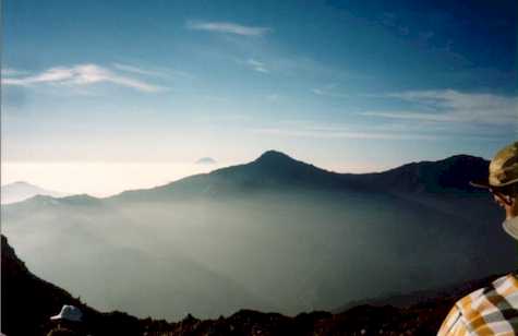 7:00山頂に立つ。快晴で360度のパノラマを約1時間満喫。