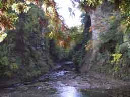 る。途中、最近崩落して露頭のあるところに案内版がある。この渓谷は200万年前に海底から隆起した厚さ500mの大田代層を流水が削ってで