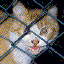 呼ぶと近寄ってくるが、金網越しに撫でさせるだけで、金網の下をくぐって
