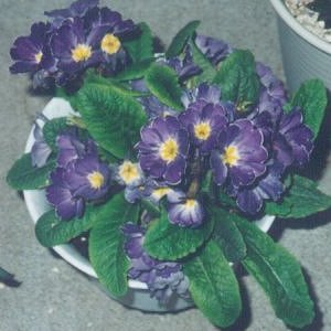 これはプリムラ・ポリアンサです。ほかにピンクが別の鉢にあります。上の写真にあるパンジーの紫があまりにもきつそうだったので、この写真を撮影したあとに、パンジーやプリムラの植え替えをしました。いまではもう少し鉢が増えています。