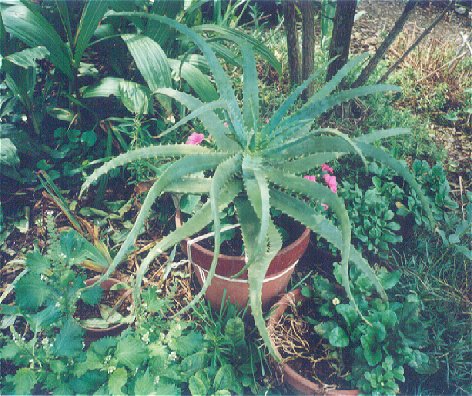 29日の午前中は、晴れていたのでアロエの植え替えをしました。これからいよいよアロエの成長期。楽しみです。コンクリートの殺風景な庭に、アロエやほかの植物が彩りを添える季節……左の写真は「去年の7月」のものです。