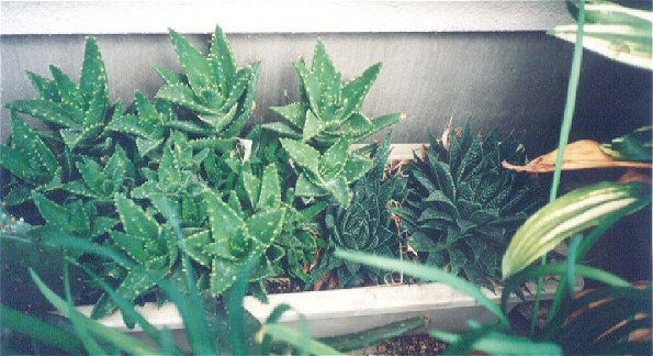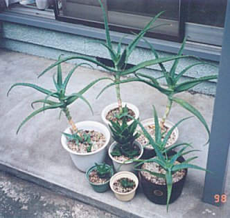 何人かの人にアロエをあげることになったので、アロエについてまとめてみまし た。自分のアロエをほかの人にもらっていただけるなんて、本当に嬉しいですね。 −−−−−−−−−−−−−−−−−−−−−−−−−−−−−−−−−−−− 一年を通して、日当たりのよい場所におく。3月末〜10月の中旬くらいまでは 屋外の日当たりのよい場所。それ以外は、室内の日当たりのよい場所。ただし、 寒さに弱いので、雨戸をしない場合は、窓ぎりぎりにおくと葉が弱る。窓と鉢の あいだに夜だけダンボールなどを挟むとよい。 水をやる場合は、葉にはできるだけ水をかけないようにする。雨が当たった場合 も、できるだけ葉に水が残らないように注意する(残った水を自然乾燥させると 表面に菌が繁殖して、色が黒ずんで汚くなるため。葉に残った水は「ふーっ」と 息を吹きかけたり、ほんの少し鉢を傾けると流れて落ちる)水やりの注意: 夏なら2日に一度くらい、夕方にたっぷり。土が乾燥していたら毎日も可。 冬は10日に一度くらい、昼間にほんの少し。 (それ以外の季節は、あいだをとって考えてください) 一年を通して、受け皿にまで水がたまったら、受け皿の水をすぐに捨てる。夏は 根腐れの原因になり、冬は凍結の心配があるため。