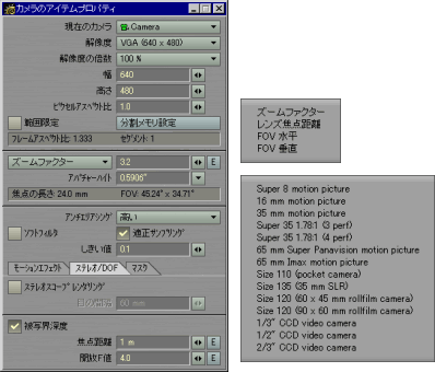 3DCGソフトのほとんどが現実のカメラに倣って設定可能なようになっています。