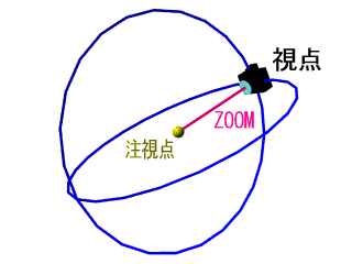 [スペース] + 上下のドラックで 注視点と視点の距離が変わり
