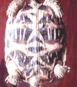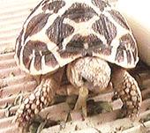 インド、パキスタン、スリランカ原産の、甲羅の模様が大変美しいリクガメです。甲長は最大で35cmくらい、メスの方がオスより一回り大きいようで、成長もメスの方が早いようです。日本でも人気があるので時期によっては大量に輸入されてきているようですが、ピンポン玉サイズの子ガメは大変にデリケートで弱く、飼育するにはかなりの努力が必要となります。