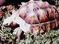 アフリカのサハラ砂漠周辺、エチオピア、モーリタニア、スーダン、ニジェールなどの地域に生息する大型のリクガメです。ガラパゴス、アルダブラゾウガメといった離島に生息するカメを除けば世界最大級のリクガメで、記録では甲長80cm、体重100kgを越えるものまでいるそうです。現在ではアメリカで盛んにブリーディングされており、日本に来ているものもほとんどがアメリカ生まれのようです。(わが家のスズもアメリカ産です)