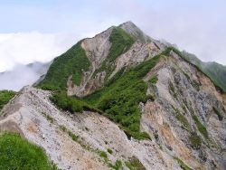 | 雨飾山(1963m)雪渓 | 火打山 (2462m) | 白山 (2702m) | ||