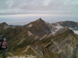 | 常念岳から見た穂高連峰 2010.08 前穂高岳、奥穂高岳、涸沢岳、北穂高岳 |