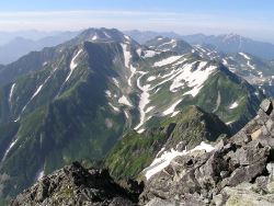 | 赤石岳 (3120m) | 荒川岳(悪沢岳) (3141m) | 塩見岳 (3047m) | ||