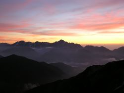 | 槍ヶ岳とその連山 | 真っ赤に燃える槍ヶ岳 (3180m) | 爺が岳、針の木岳(2821m)と黒部湖 | ||