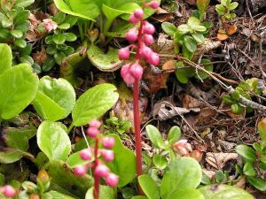 | ベニバナイチヤクソウ (イチヤクソウ科) 亜高山の林内に生え、高さ20cmほど |