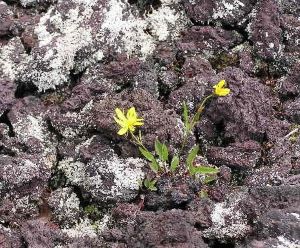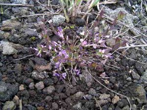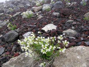 フジハタザオ (アブラナ科、ハタザオ属) 富士山の特産で、高さ10〜25cm |