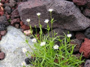 イワツメクサ (ナデシコ科、ハコベ属) 砂礫地に生え、高さ10〜20cm |