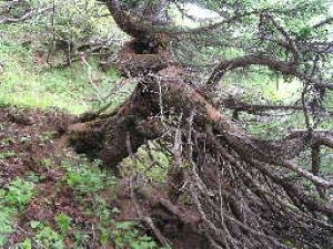カラマツの古木 (マツ科、マツ属) 富士山高山帯に見られる特異な樹形のカラマツ |